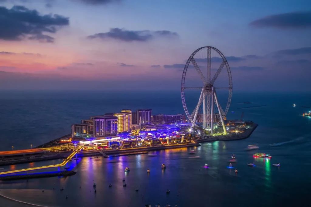 Située sur l’île dynamique de Bluewaters, cette icône du paysage urbain de Dubaï vous offre une vue panoramique imprenable sur la skyline, la mer scintillante du Golfe Persique et les monuments emblématiques de la ville.